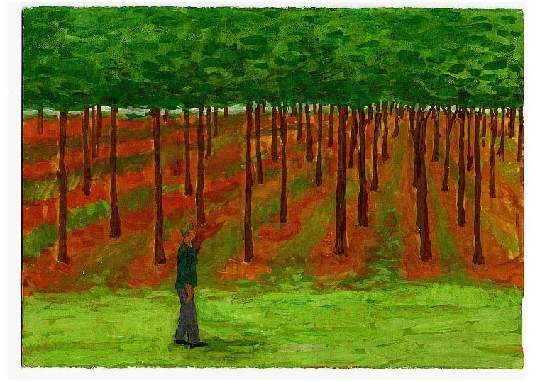 Aout - 1995 - gouache / papier 25,5x19 cm - Série autobiographique "Les Plus Belles Heures’’ - trace du meilleur moment de la veille - peintures quotidiennes - Dairy autobiography painting ’’the most beautifull hours’’ - the best moment of the day before